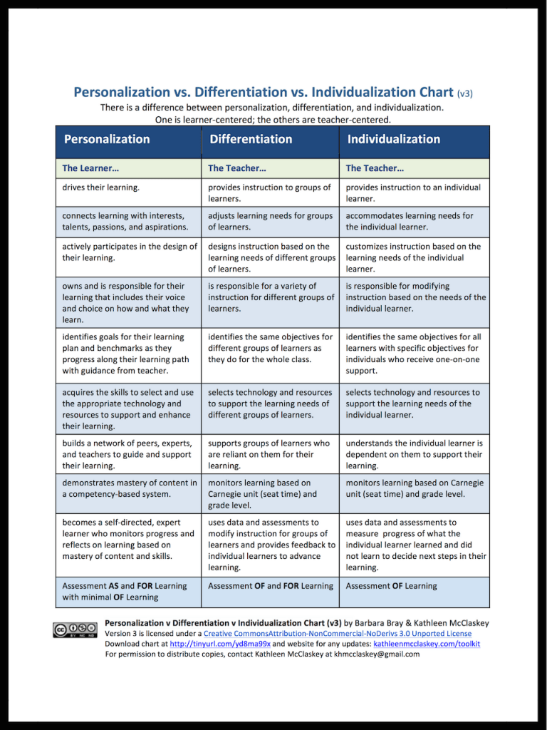 Resource found at: https://kathleenmcclaskey.com/personalization-vs-differentiation-vs-individualization-chart/